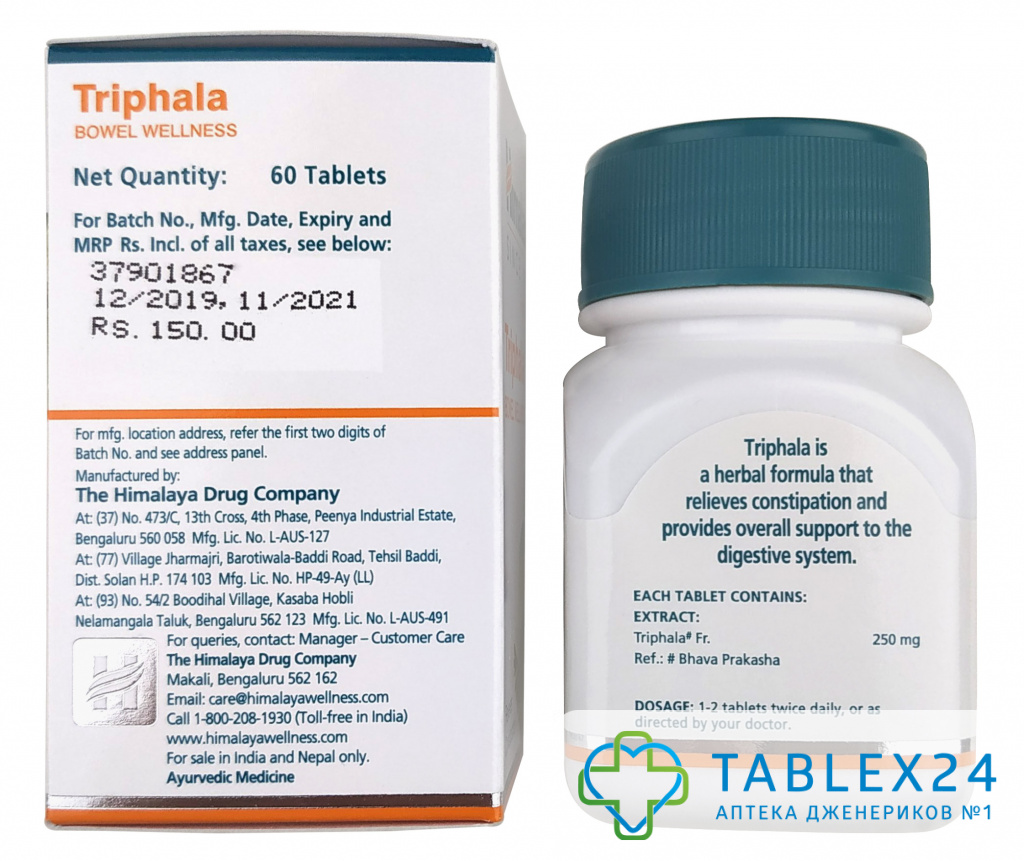 Препарат Трифала Гималаи проявляет себя как средство борьбы с проблемами кишечника, бессонницей, нервным истощением, а также с заболеваниями кровеносной системы. Таблетки отличает комбинированный состав, в котором сочетают свои лечебные свойства такие растения как амалаки, бабхитаки и харитаки (используются их сушеные плоды). Они обладают выраженной природной энергетикой, что и определяет их свойства и способности влиять на обменные процессы. Попадая в организм, активные вещества проявляют противовоспалительное действие, а также послабляют работу кишечника.