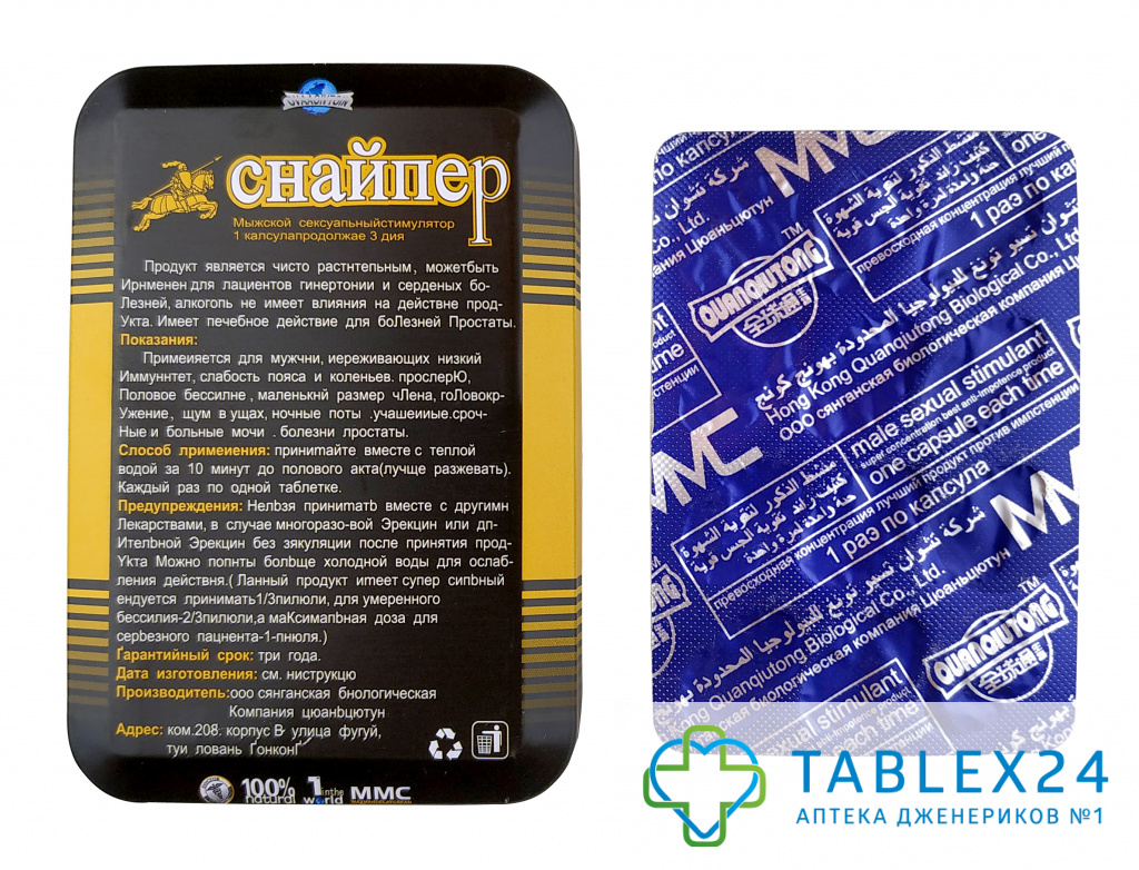 Речь идёт о биологически активной добавке (БАД), которую разработала компания «Цюаньцютун» (КНР) совместно с учёными Стэнфордского университета (США). Натуральное сырьё, передовые технологии, научный подход сделали препарат Снайпер максимально эффективным и, что не менее важно, безопасным в применении. Это позволяет мужчинам, нуждающимся в улучшении качества сексуальной жизни, принимать БАД, не опасаясь за своё здоровье.