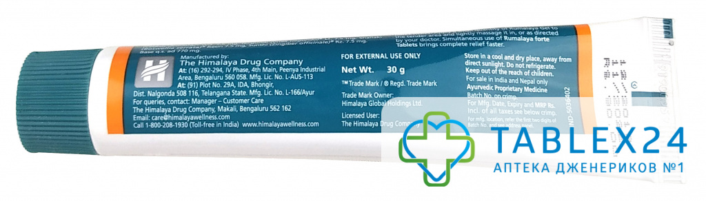 Натуральный аюрведический гель Румалайя – это продукт природного происхождения, который с успехом используется для облегчения суставной и мышечной боли, уменьшает чувство дискомфорта после ушибов и травм, снимает воспаление и отечность соединительных тканей и мышц. Регулярное применение препарата способствует восстановлению подвижности сустава и свободы движения. Уже с первого нанесения пациент может ощутить заметное облегчение. Курсовое применение Gel Rumalaya Himalaya совместно с таблетками позволяет получить устойчивый эффект, в том числе при обострении хронических недугов.