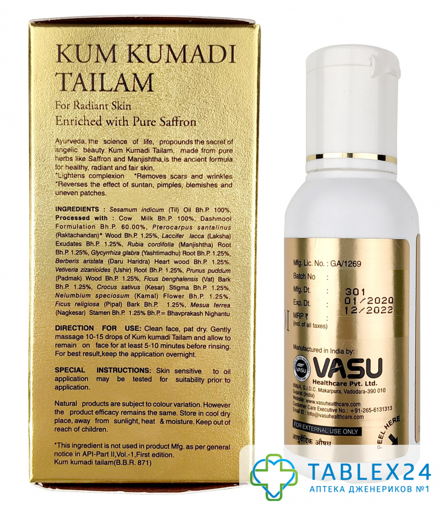 К числу таковых относится индийская компания «Vasu», в частности, со своим уникальным продуктом – Kumkumadi Tailam. Разговор ведётся о масле, обогащённом почти тремя десятками целебных ингредиентов – главным образом экстрактами из различных частей лекарственных растений, хотя масло для лица Kumkumadi содержит и компоненты животного происхождения, в частности, молоко.