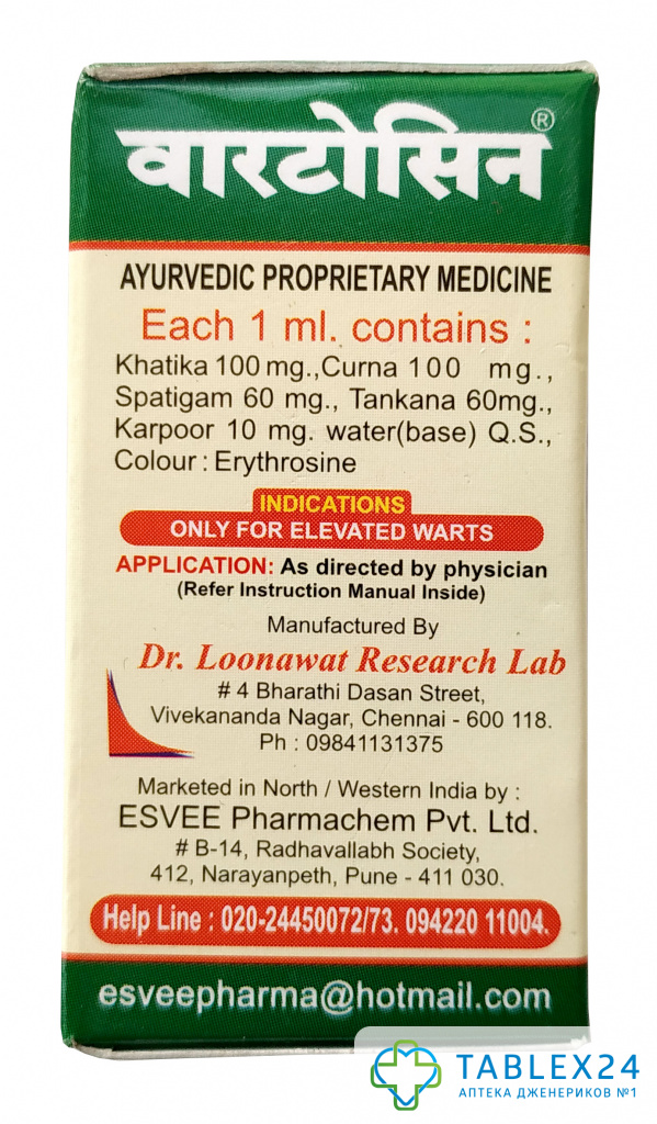 Удаление бородавок осуществляется химическими или физическими способами. Проводятся подобные манипуляции в условиях клиник и стоят они достаточно дорого. Предлагаем вашему вниманию альтернативный вариант – купить Вартосин (производитель – фармацевтическая компания «Dr. Loonawat Research Lab.», Индия).