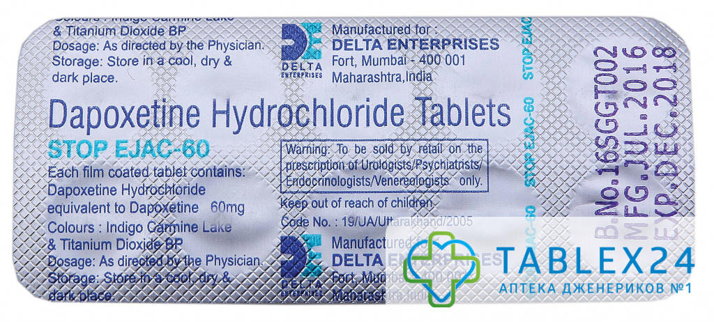 Преждевременная эякуляция в сочетании с отсутствием волевого контроля ее наступления – проблема, которая вносит в половую жизнь мужчин нестабильность и дисбаланс. Для устранения неприятных проявлений дисфункции им рекомендуется использовать эффективные средства лечебного свойства. К числу пролонгаторов полового акта относится Stop Ejac 60 – доступный дженерик Prilidgy. В обоих препаратах содержится дапоксетин, способный подавить рефлекторную эякуляцию и существенно продлить время занятия любовью.