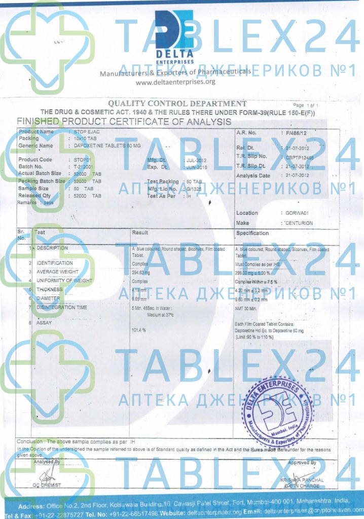 Таблетки Stop Ejac купить могут мужчины, сексуальная дисфункция которых связана как со скорострельностью, так и неспособностью достигать эрекции. Лекарство отлично сочетается с регуляторами потенции (силденафилом, варденафилом и другими). Кроме того, очевидные преимущества дженерика связаны и с такими свойствами как: