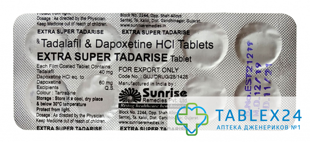 С утратой потенции Экстра Супер Тадарайз «сражается» с помощью Тадалафила – того же активного компонента, что присутствует в составе именитого Сиалиса, дженериком которого является обсуждаемый нами медикамент.
