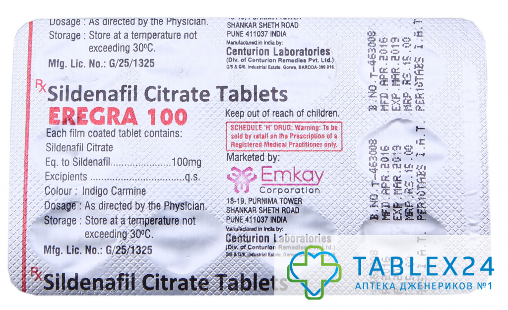 Присутствие в названии дженерика Еregra числа «100» обозначает, что в каждой пилюле содержится 100 мг активного компонента – Силденафила. Это максимально допустимая суточная доза. Следовательно, в течение 24 часов нельзя принимать более одной таблетки указанной концентрации.