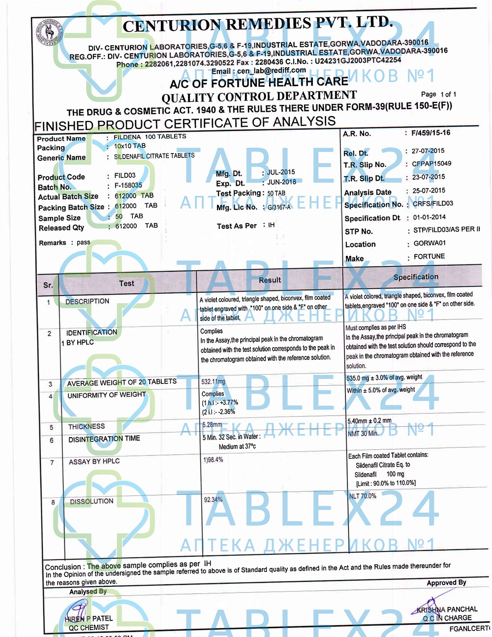 Таблетки Филдена в Москве купить можно с содержанием максимальной дозы препарата в 100 мг. Принимать их рекомендуется не более 1 штуки в сутки (при необходимости дозу можно разделить). Время ожидания эффекта составлять до 50 минут. Продолжительность действия на организм - до 5 часов.