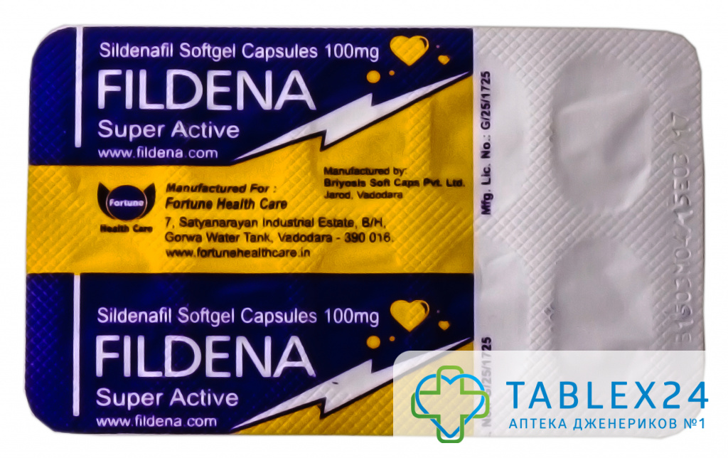 В число дженериков известной и востребованной Виагры входят лекарственные препараты различных форм выпуска. Fildena Super Active – регулятор потенции, выпускаемый в капсулах, каждая из которых содержит по 100 мг действующего вещества – силденафила.