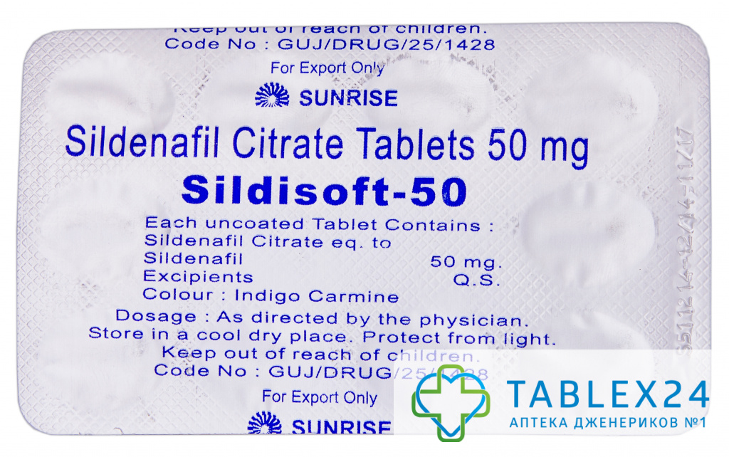 Таблетки Силдисофт 50 – это качественный дженерик Виагры, в составе которого содержится 50 мг действующего вещества. Цель приема препарата – улучшить качество потенции и устранить риски непредвиденной половой слабости. Проникая в кровоток, силденафил улучшает кровообращение и устраняет спазмы мускулатуры, препятствующие возникновению эрекции. Лекарство начинает работать при появлении сексуального раздражителя и наличии полового возбуждения. Продолжительность действия таблетки Sildisoft 50 составляет порядка 5 часов, - времени достаточно для демонстрации мужской состоятельности в постели, при необходимости не единожды.